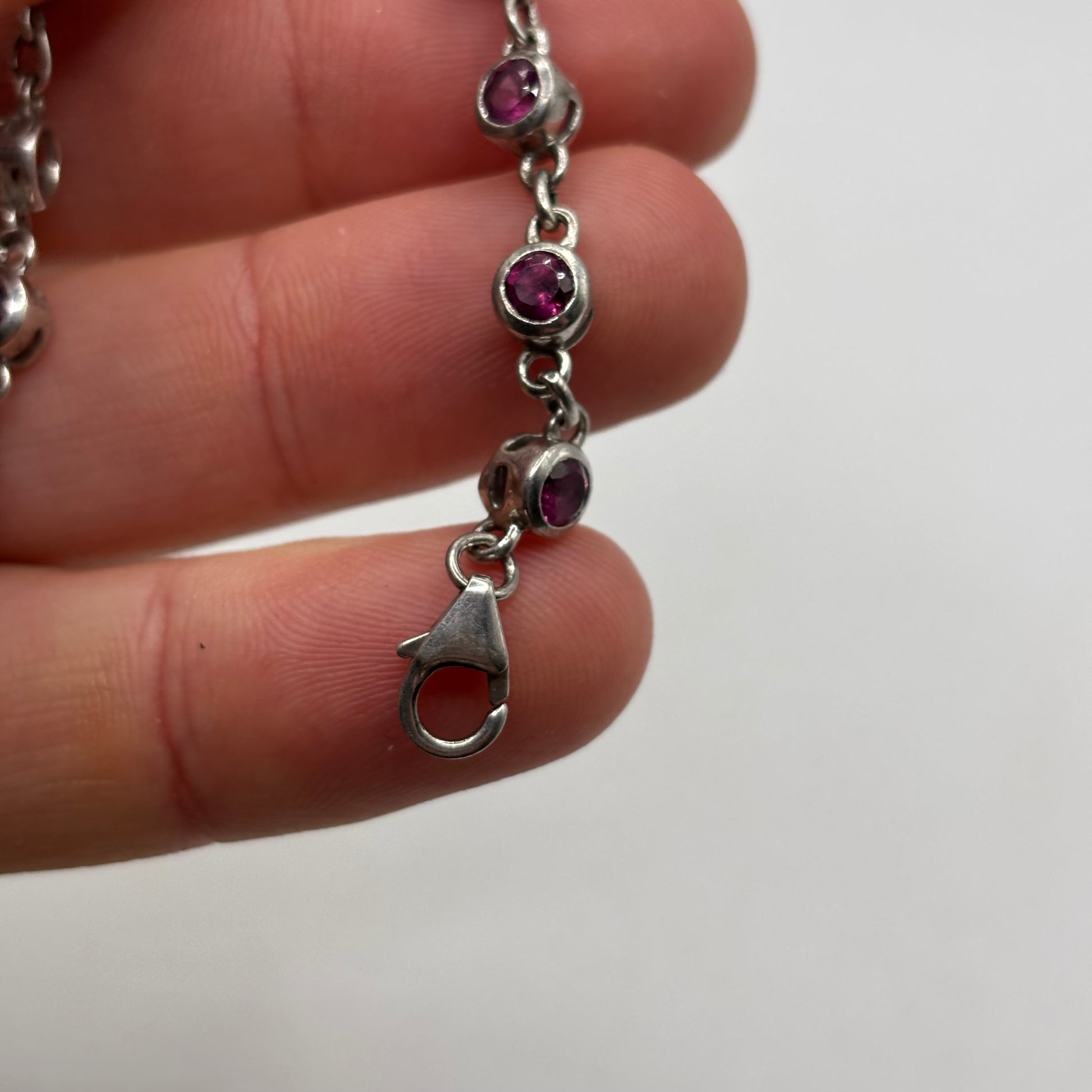 Silver 6”-7” Pink CZ Bracelet