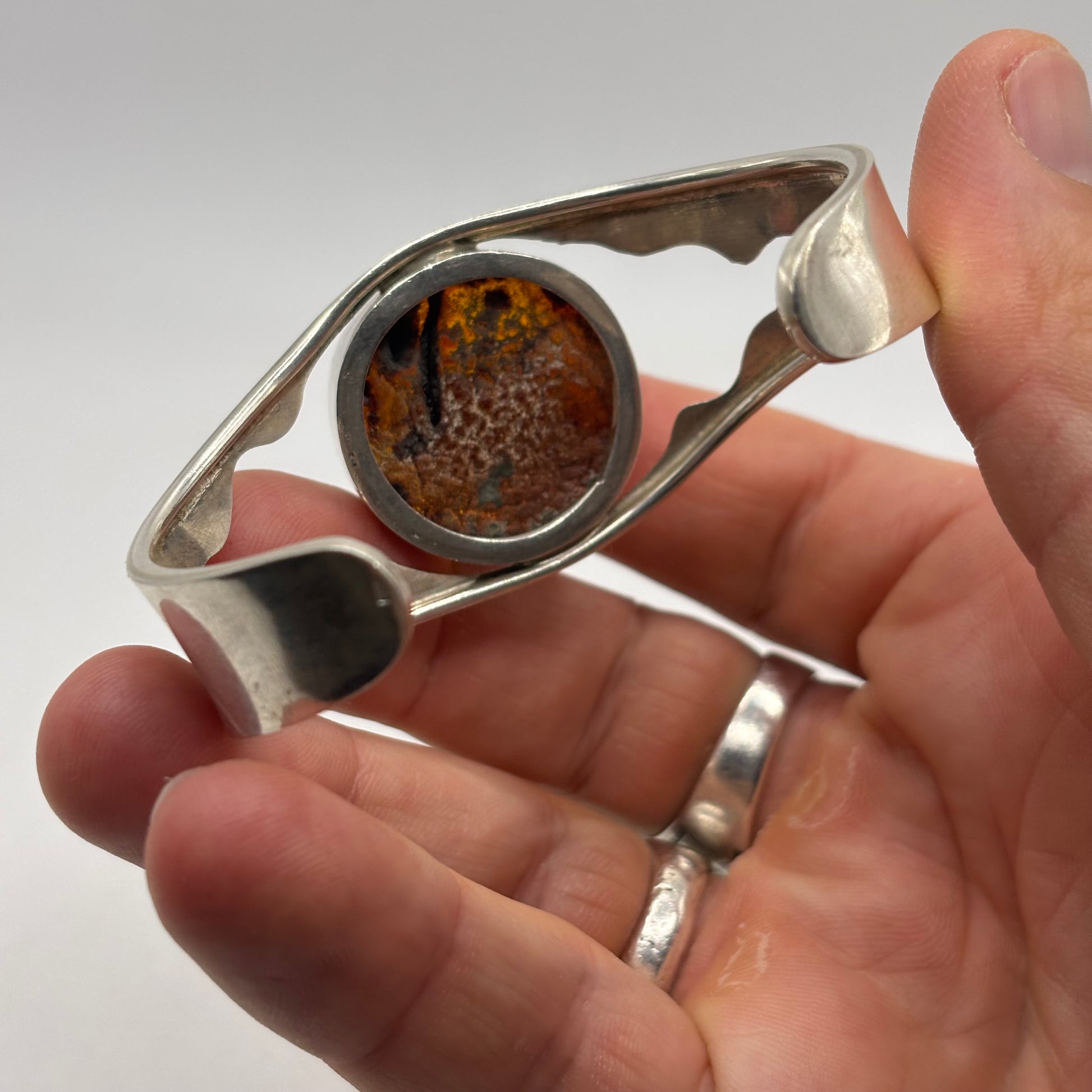 Silver Abstract Amber Cuff Bangle