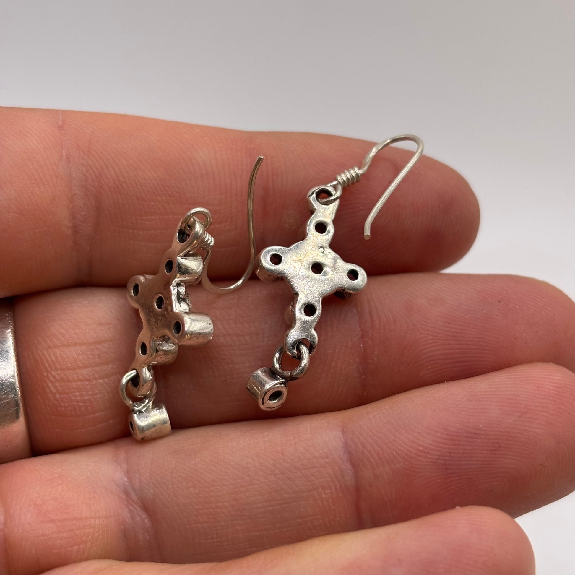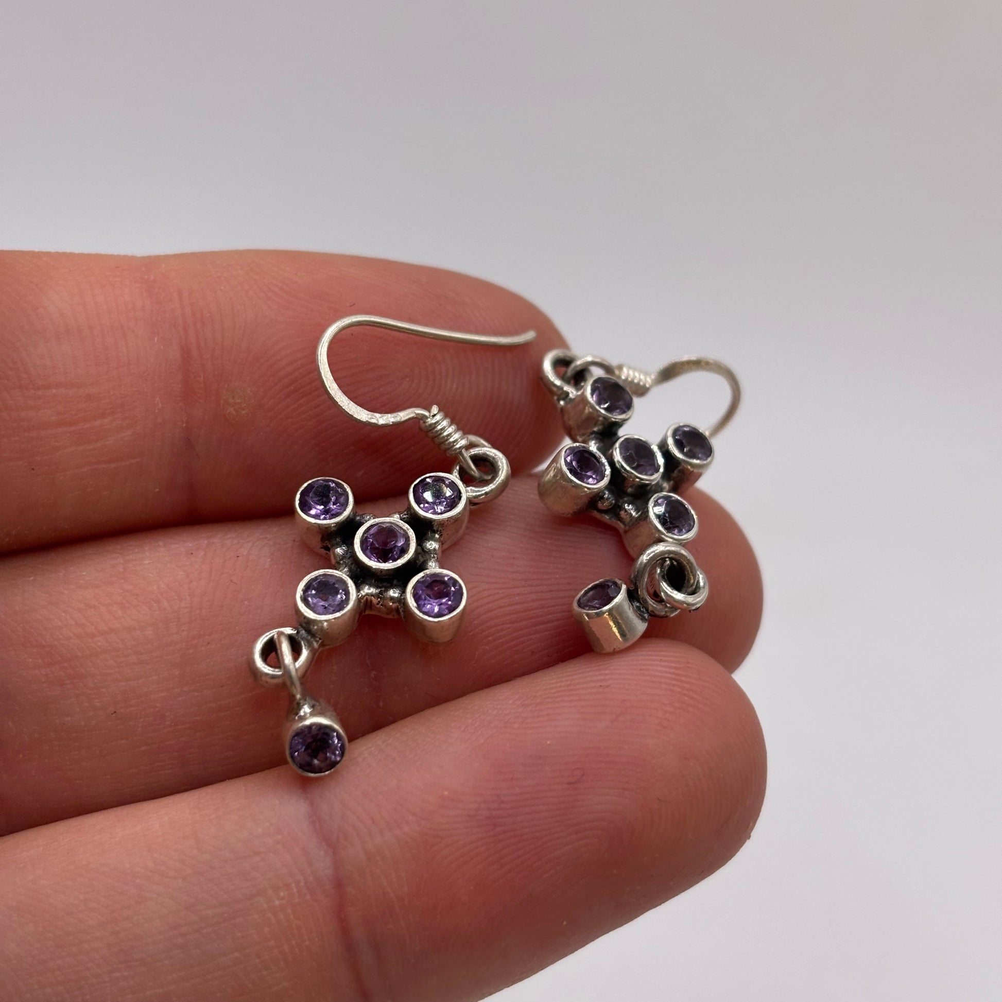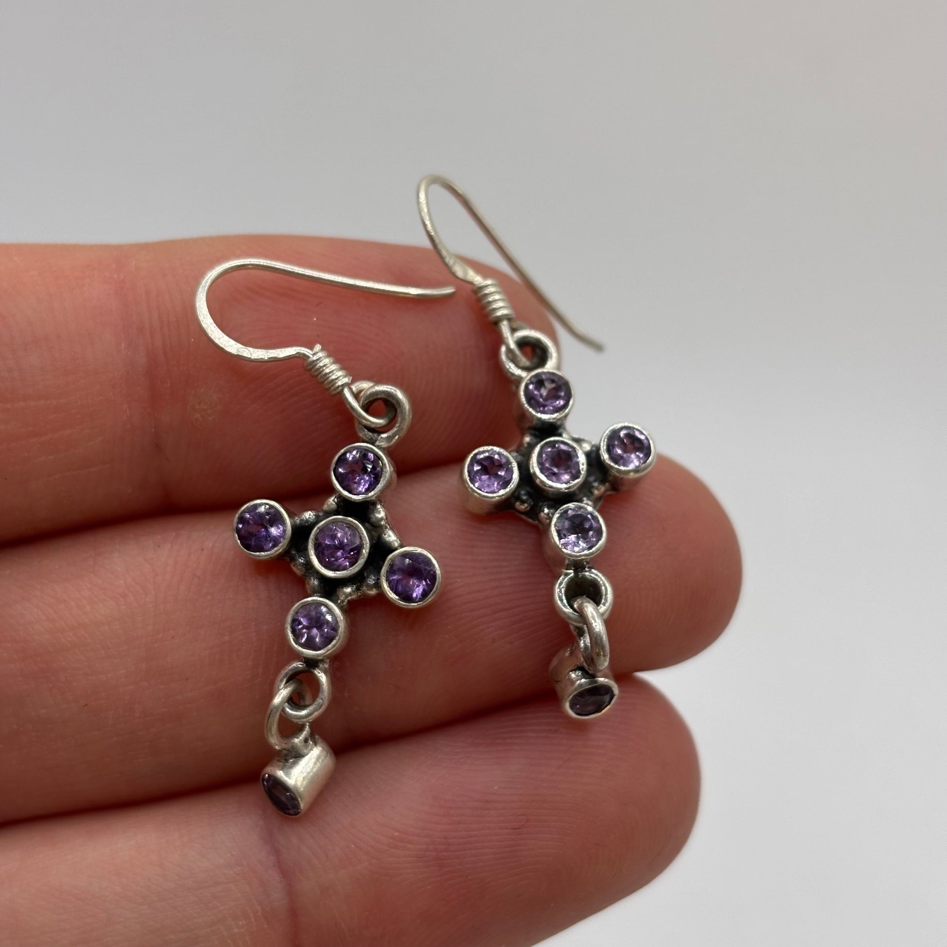 Silver Amethyst Cross Earrings